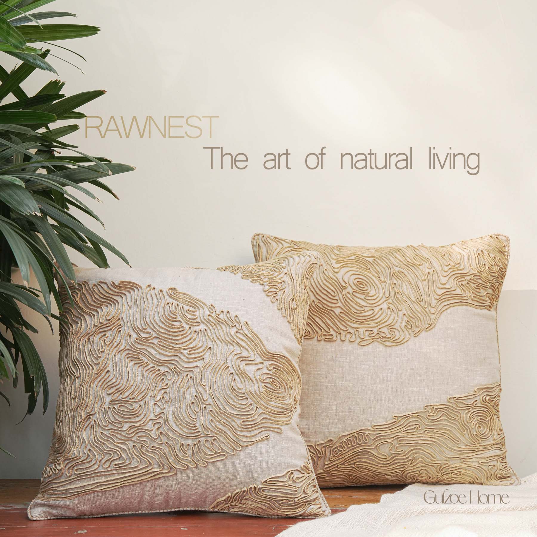 Introducing Rawnest collection—a harmonious blend of, raw elegance, rustic charm and refined craftsmanship, rooted in the ethos of slow living. Featuring jute and linen fabrics, hand embroidery, unpolished wooden beads, and woven jute braid, each piece celebrates the beauty of imperfection and the warmth of organic textures. The neutral hues are inspired by sunlit meadows and stonewashed paths, creating pieces that feel both timeless and contemporary. Each piece reflects a balance between simplicity and intricacy, transforming homes into sanctuaries of understated beauty.