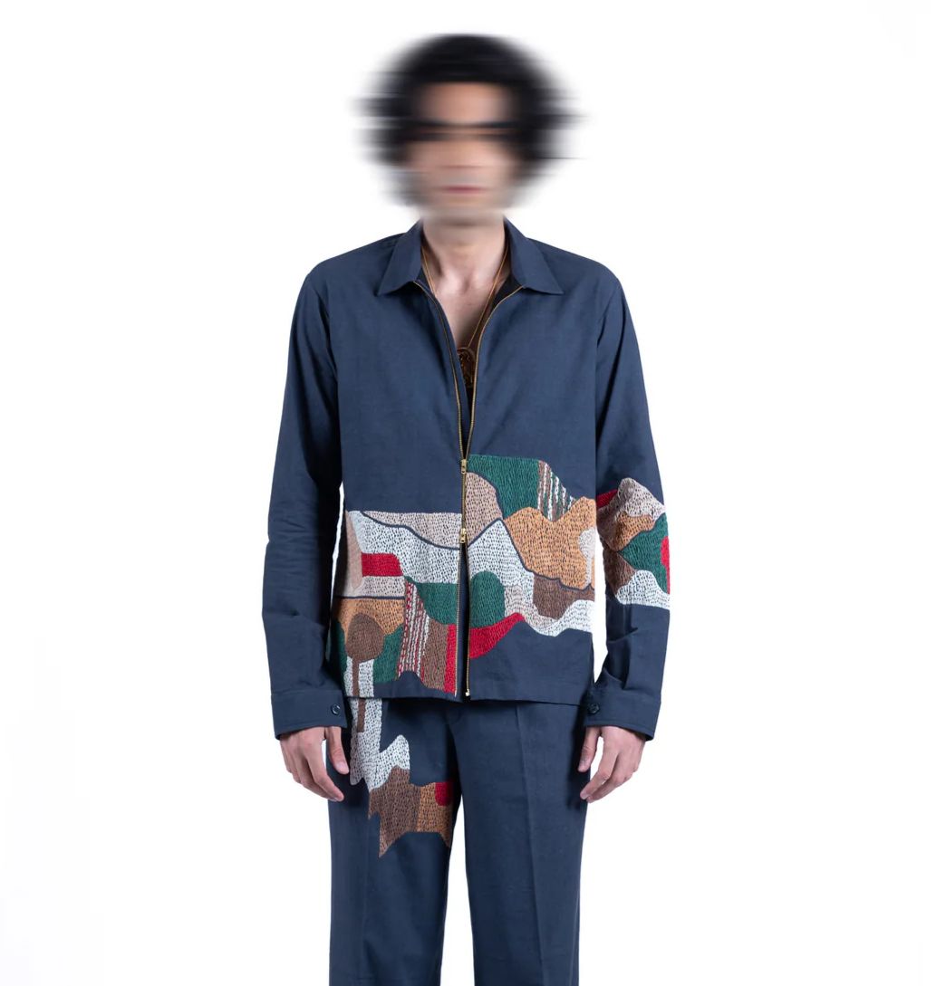 This Mountain Muse co-ord is very close to our heart, It's a hand embroidered Kantha Stitch work.